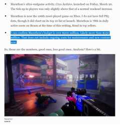 I can confirm Marathon’s budget is over $200 million. Likely more than $250 million. That does not include ongoing costs for maintenance and new content now.